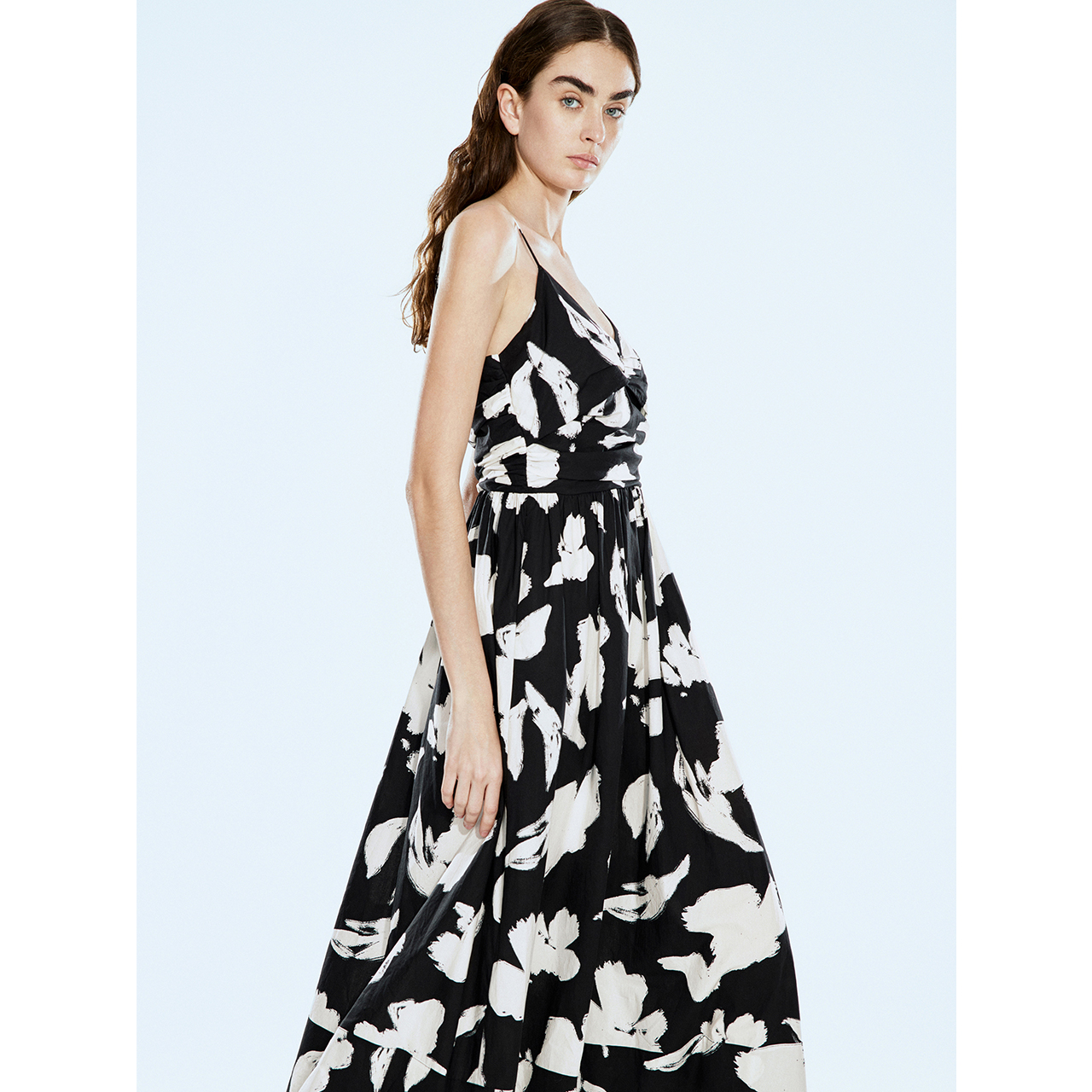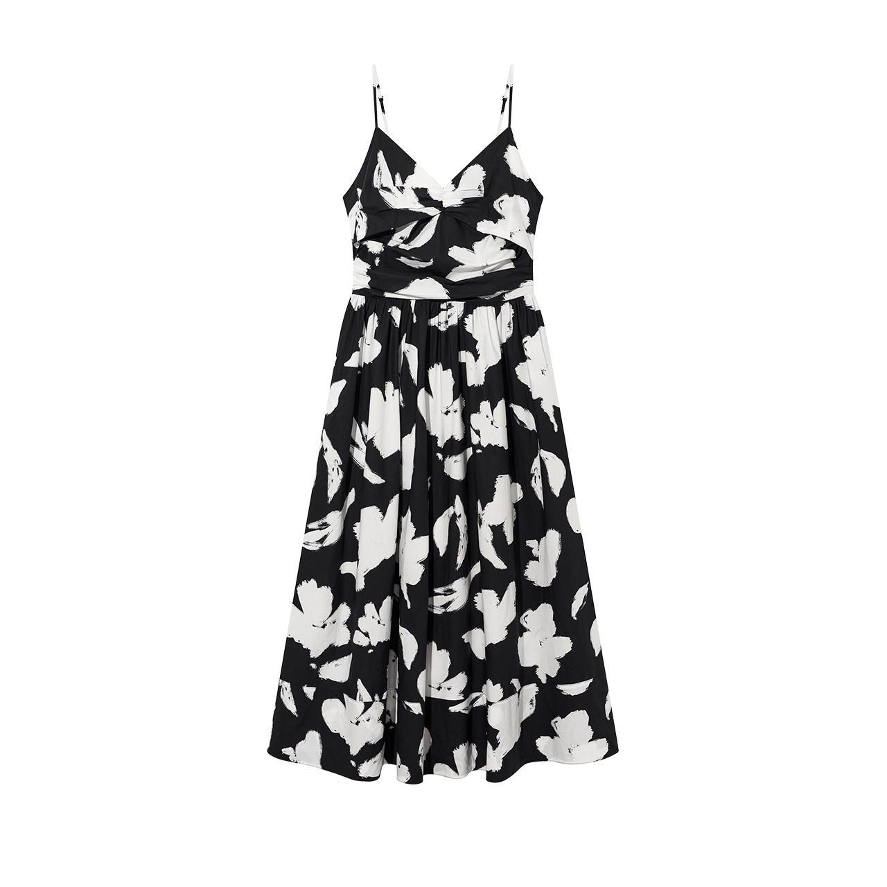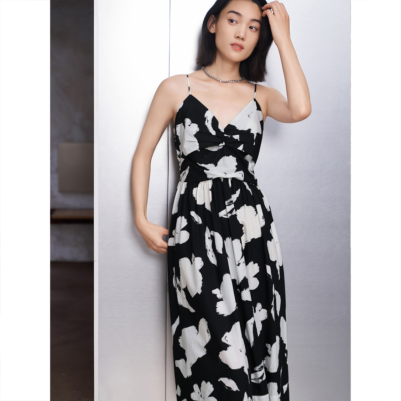纯棉v领黑白印花吊带连衣裙长款 COVERINS2024夏季 新款