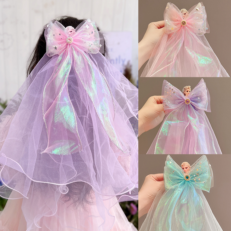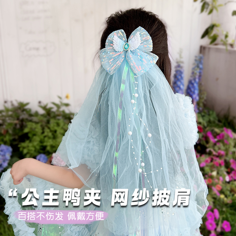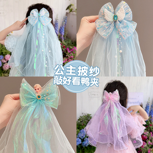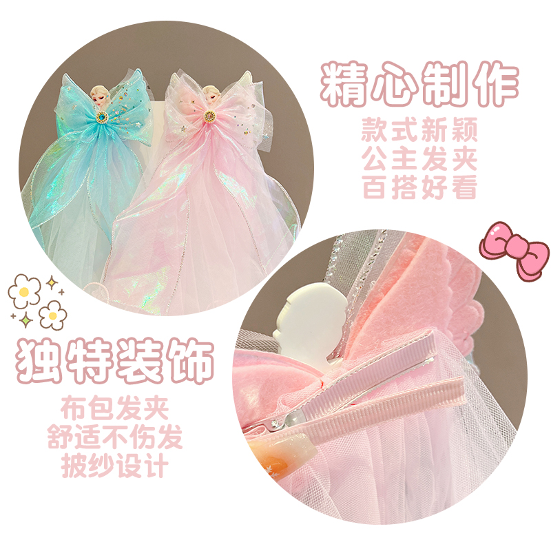 儿童公主披纱发夹艾莎公主小女孩新款 头纱发饰宝宝蝴蝶结发卡鸭夹