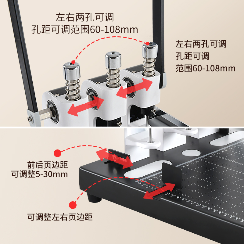 档案人事档案专用打孔机 订专用可调孔距垫片中空钻头 三孔打孔器干部职工退休切纸打孔两用打洞机档案装