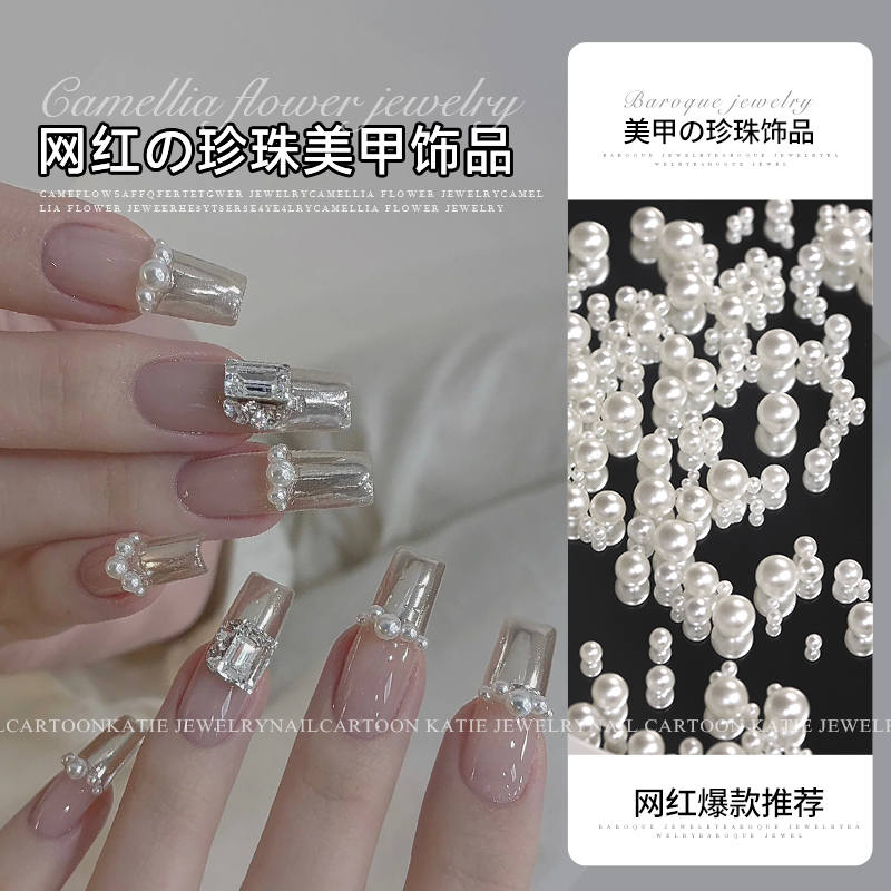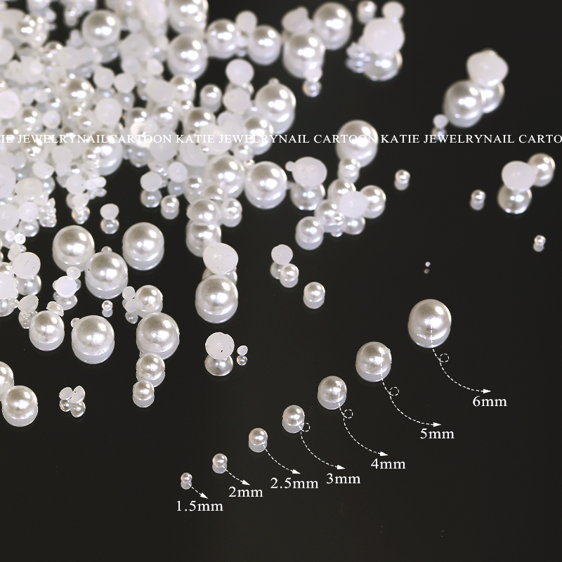 1000颗美甲珍珠饰品平底半圆白色高亮日系圆珠指甲装 饰手工可拆卸