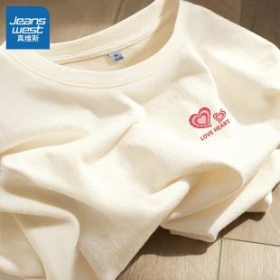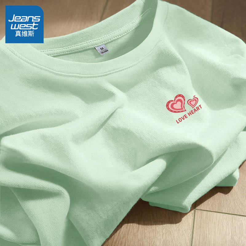 气质上衣宽松显瘦正肩半袖 KHV真维斯粉色纯棉短袖 t恤女夏2025新款