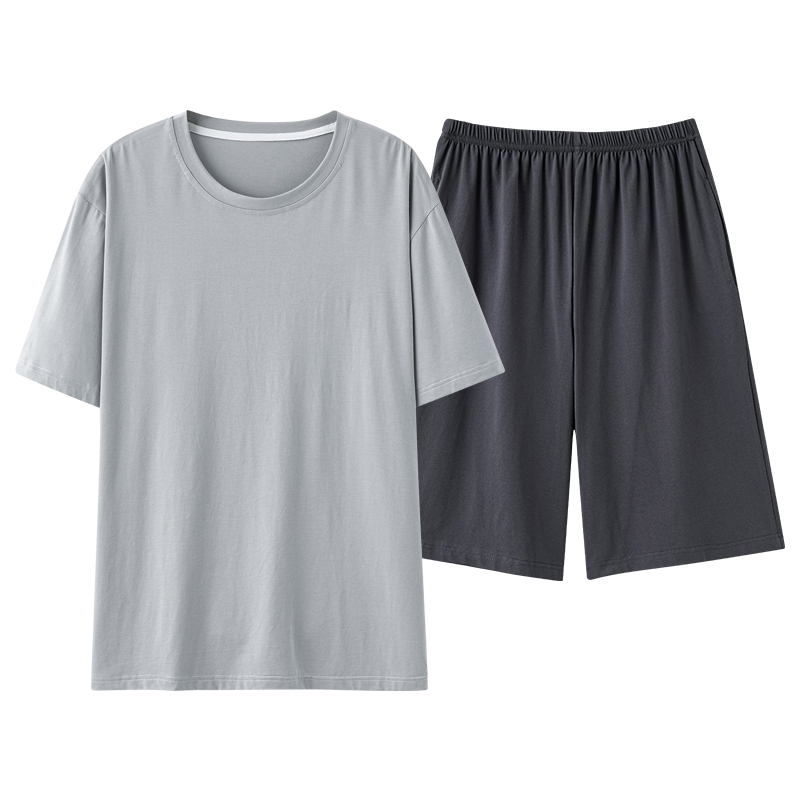 睡衣夏季 2024新款 纯色凉感棉短袖 青少年家居服套装 大码 莫代尔男士