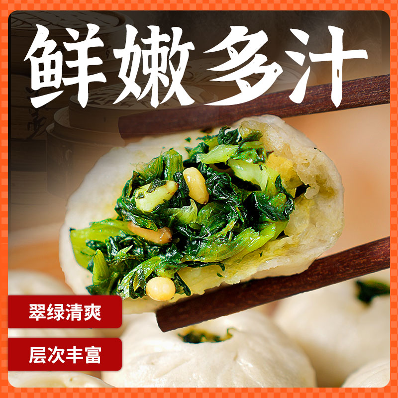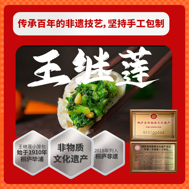 王继莲青菜松仁小笼包非遗传承老面手工包子早餐加热即食200g 袋