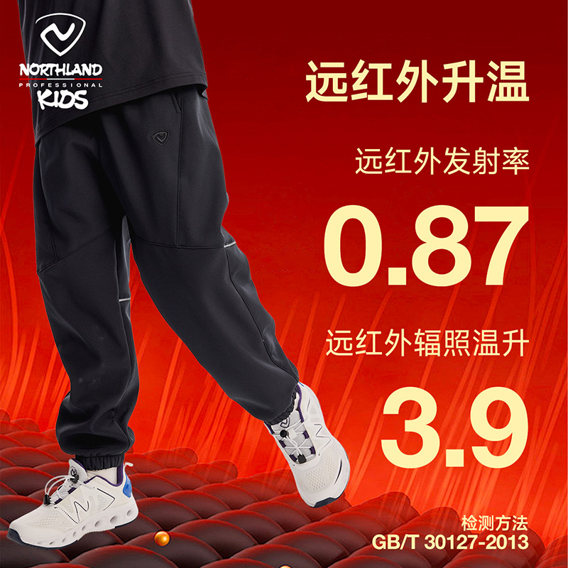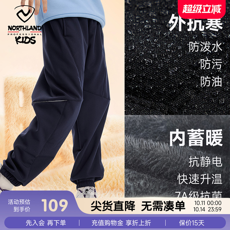 中大童加绒三防运动长裤 保暖冲锋裤 男童2024冬季 诺诗兰儿童软壳裤