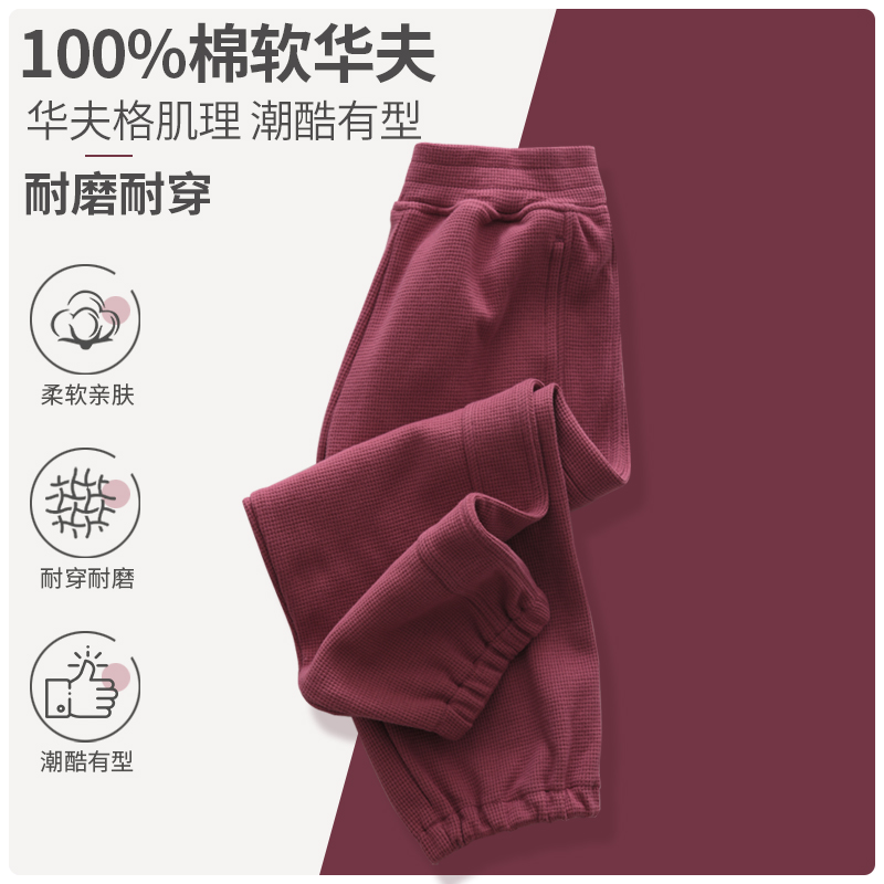 婴儿春秋女宝宝保暖长裤 男童裤 休闲裤 秋冬季 子纯棉华夫格儿童卫裤