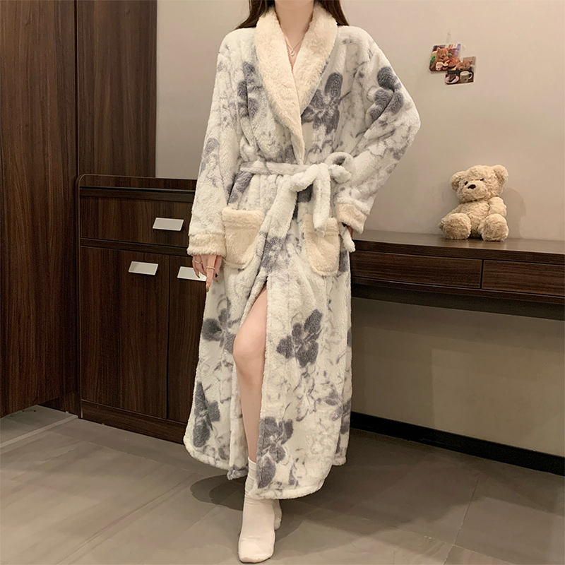 性感浴袍2025秋冬新款 睡衣裙家居服 法兰绒睡袍加厚保暖珊瑚绒长款