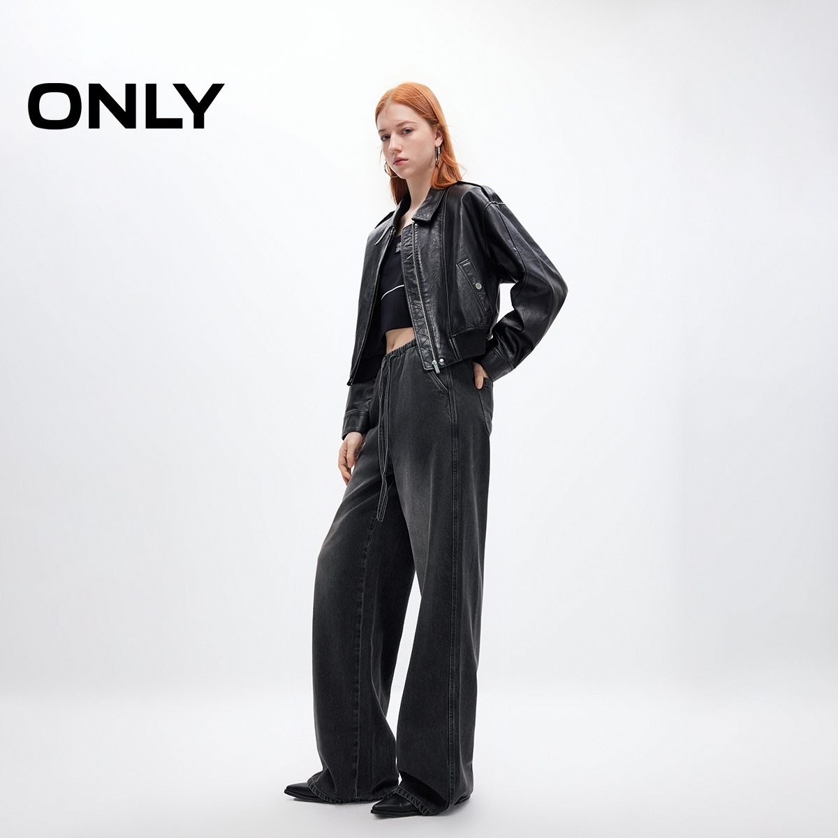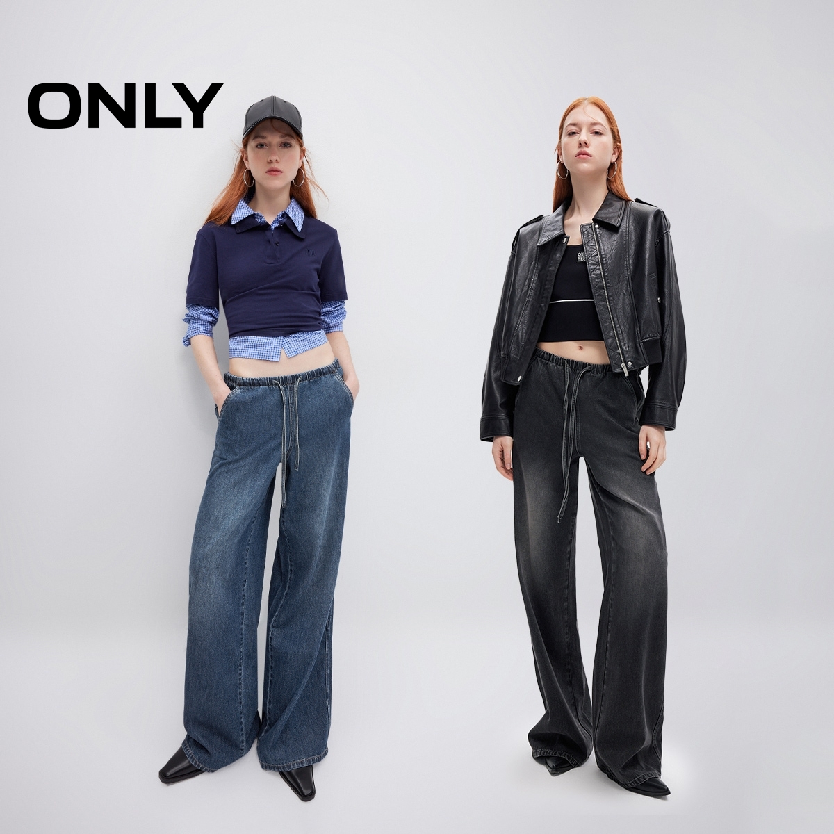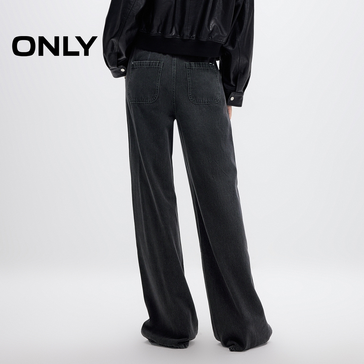 牛仔裤 ONLY2025秋季 长裤 慵懒随性抽绳松紧腰头宽松直筒裤 女 新款