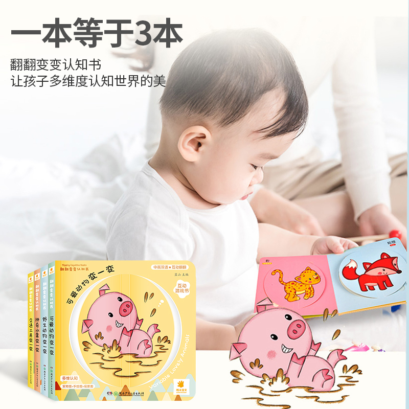 可爱动物变一变翻翻变变认知书幼儿启蒙早教书儿童绘本0到3岁宝宝一岁半两岁撕不烂益智书婴儿触摸3d立体机关书动手能力训练玩具