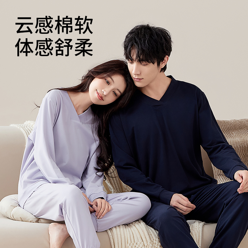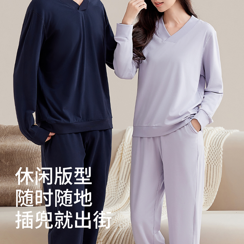 雪仙丽2025新款 女士睡衣纯色小V领睡眠服可外穿简约家居服 秋冬季
