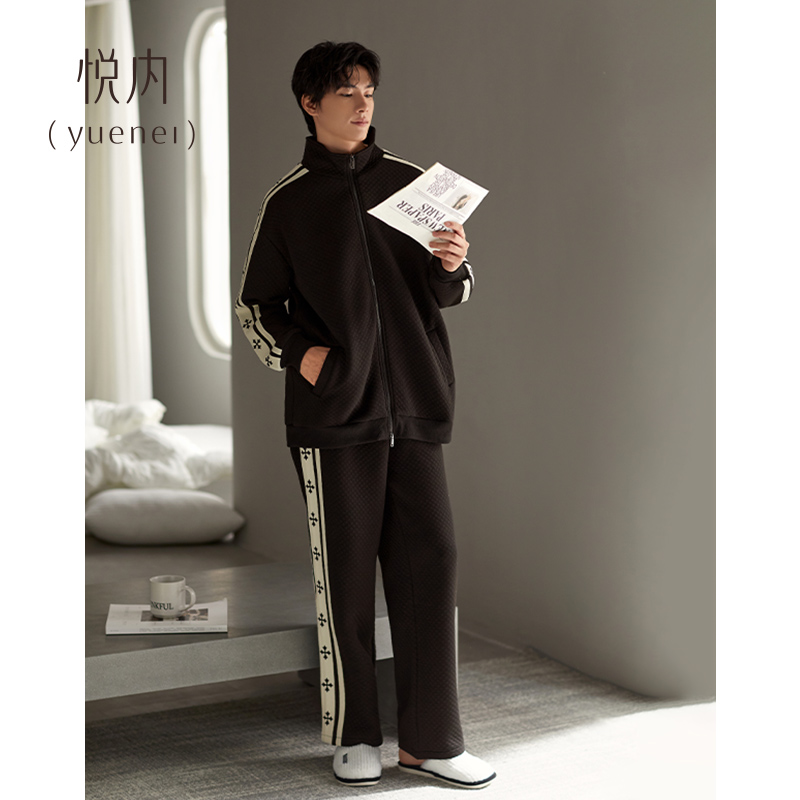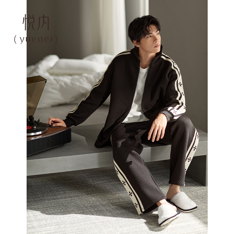 春秋款 悦内睡衣男士 空气棉夹棉加厚纯棉夹层家居服长袖 冬款 秋冬季