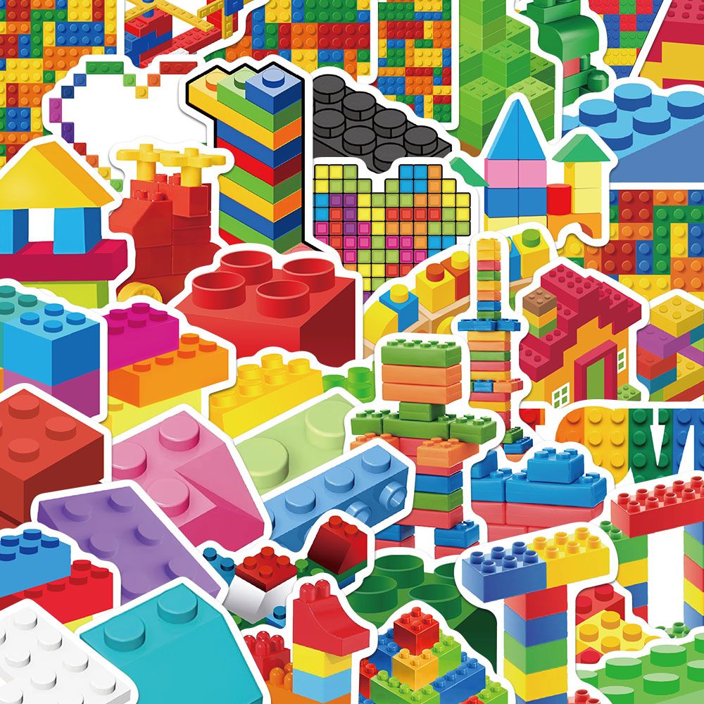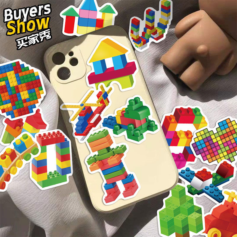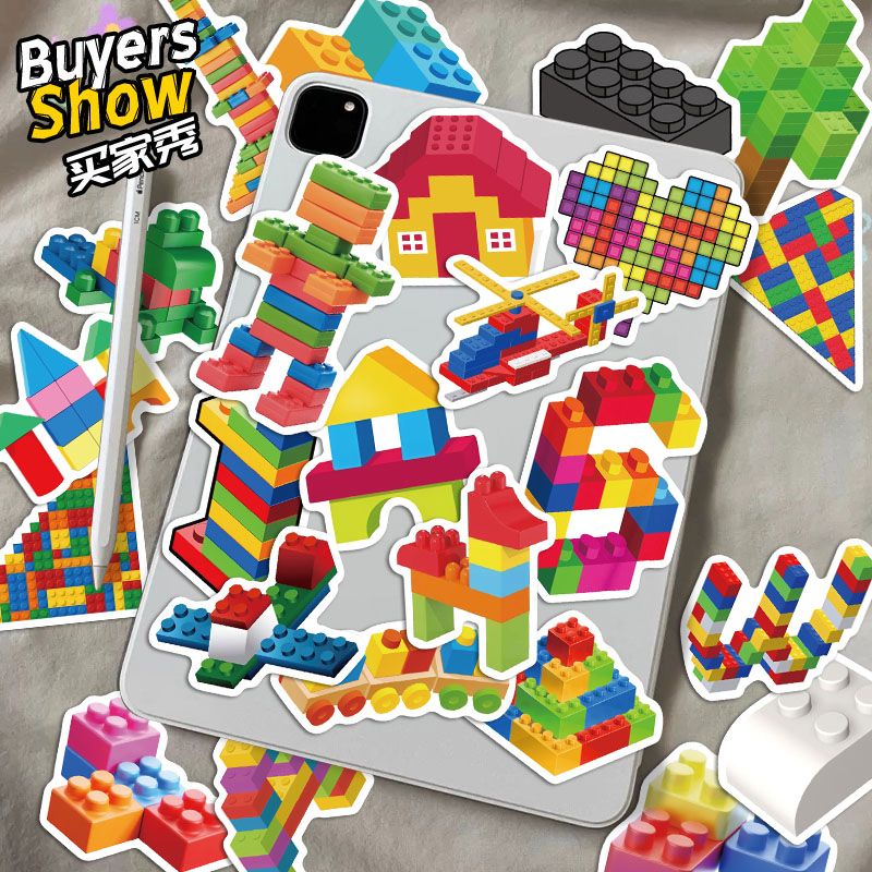 50张彩色积木块贴纸卡通儿童手账手机壳笔记本桌面装 饰防水贴画