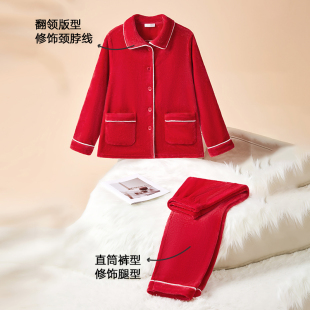 海岛绒可外穿家居服 简约薄款 睡衣女秋冬季 保暖珊瑚绒女士睡衣套装