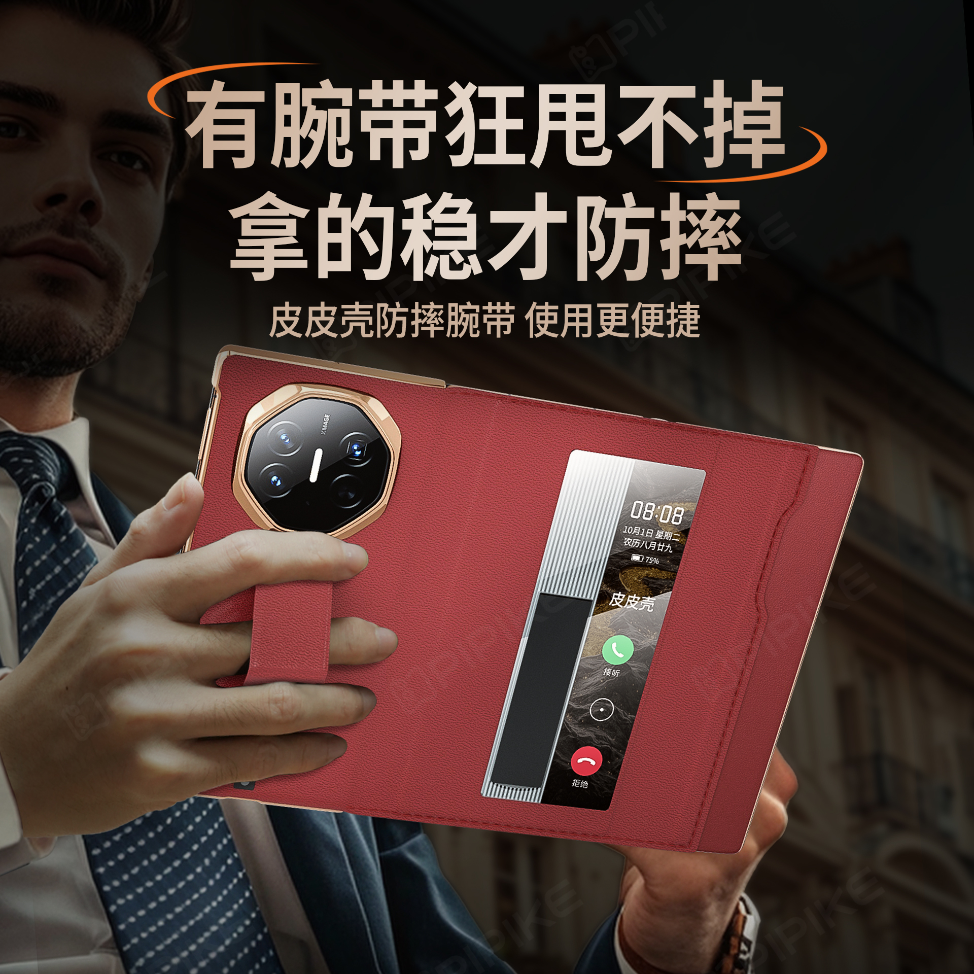 适用于华为matext手机壳华为三折叠XTS非凡大师真皮保护套全包边框腕带支架智能视窗防摔壳新款 现货速发