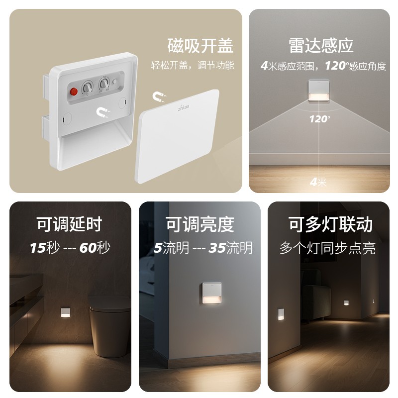 智能人体自动感应小夜灯磁吸充电大容量夜间起夜人来即亮人走即灭