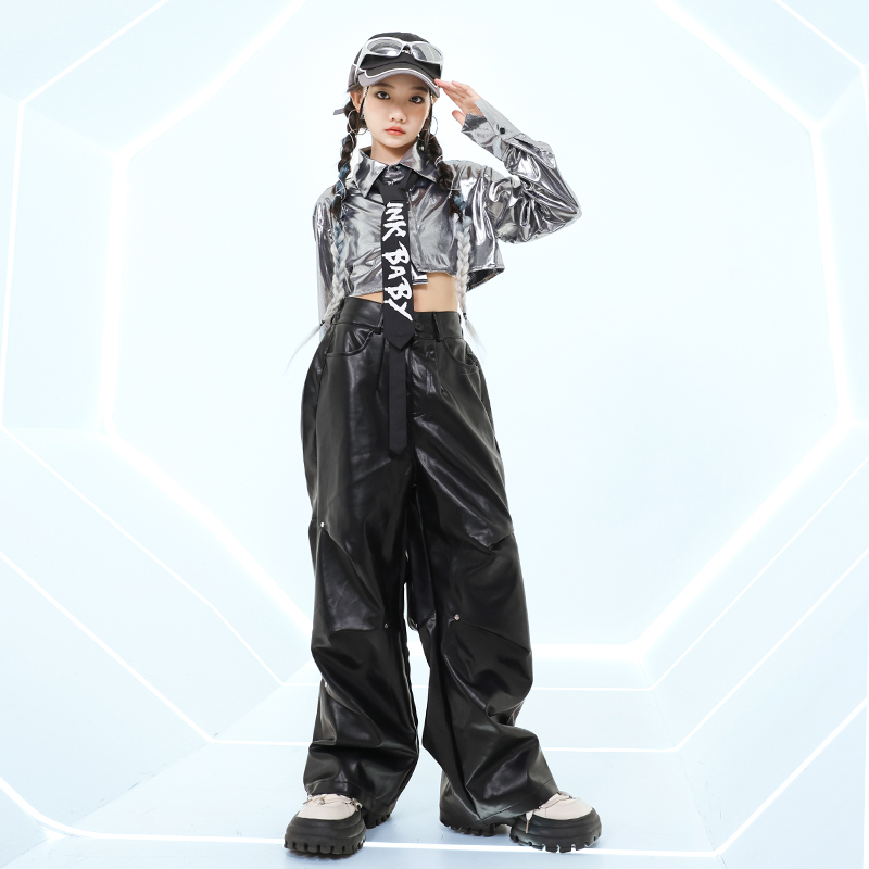 爵士舞女童潮酷露脐女团时髦少儿jazz嘻哈舞蹈套装 儿童街舞演出服