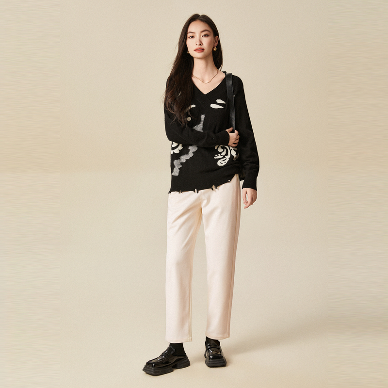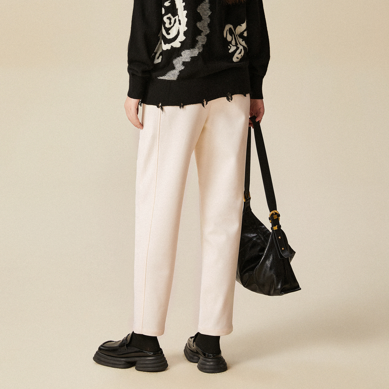 羊毛 弹力休闲长裤 蚕丝 2025秋冬加绒加厚防风裤 天丝 五只白鹅