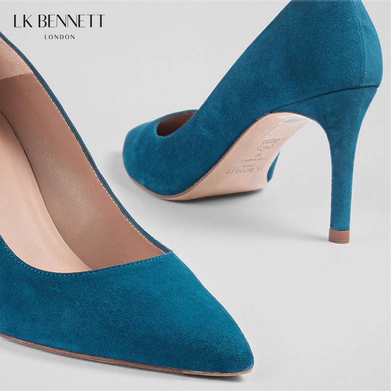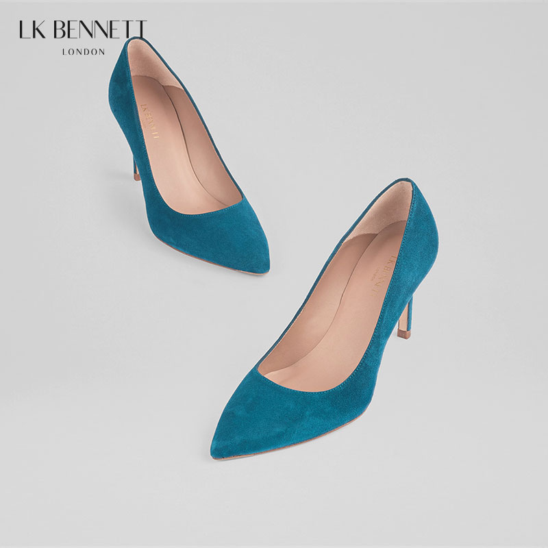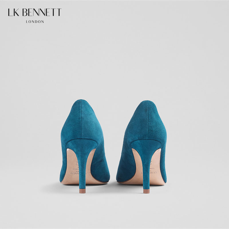 尖头细跟8cm浅口单鞋 lkbennett蓝色绒面高跟鞋 女2024年冬新款
