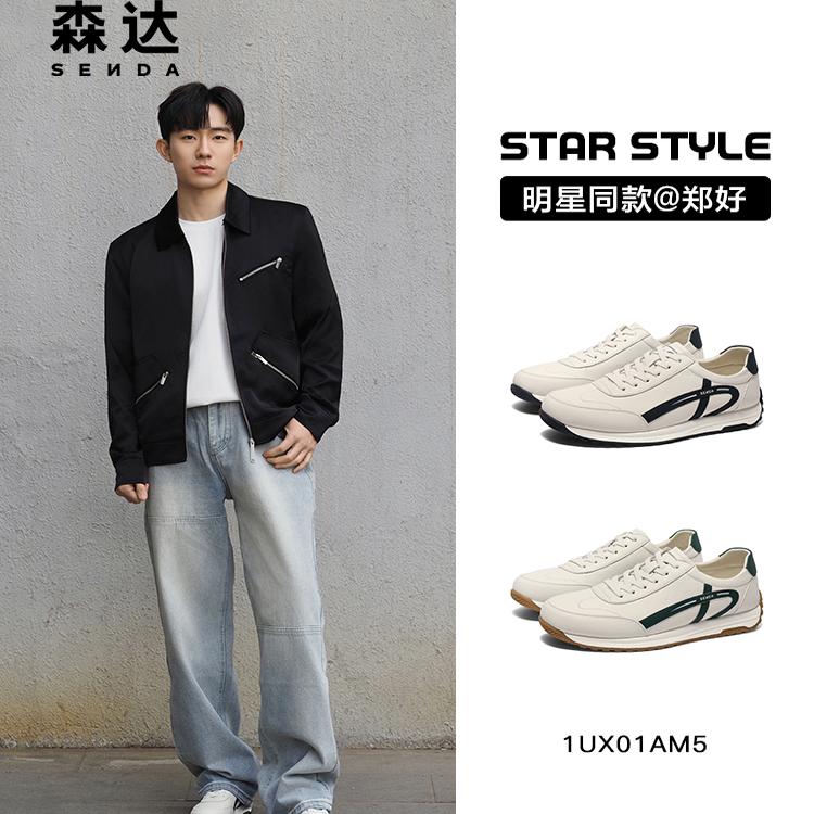 郑好同款 休闲德训小白鞋 森达板鞋 商场同款 1UX01AM5 男2025新款