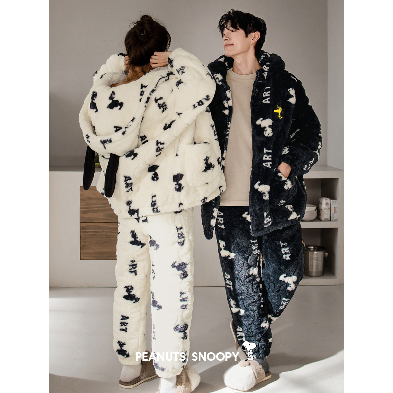 保暖防寒情侣家居服顶呱呱 睡衣套装 顶瓜瓜半边绒男士 女士加绒款