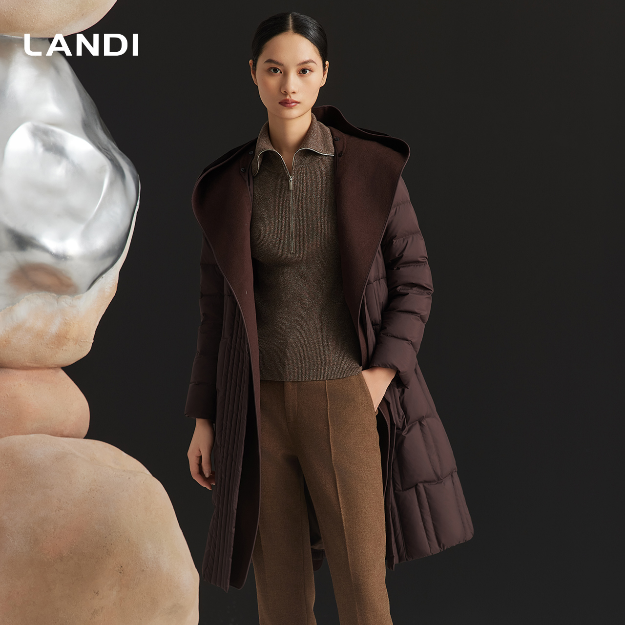 新款 通勤上衣女2025年冬季 时尚 朗姿霍尔多巴吉鹅绒羽绒服连帽修身
