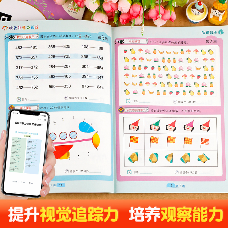 我 书 第一套专注力启蒙书 适合幼儿园大班到一年级孩子看 左右脑大脑开发思维训练练习册记忆力 视觉注意力分阶梯训练 全套4册