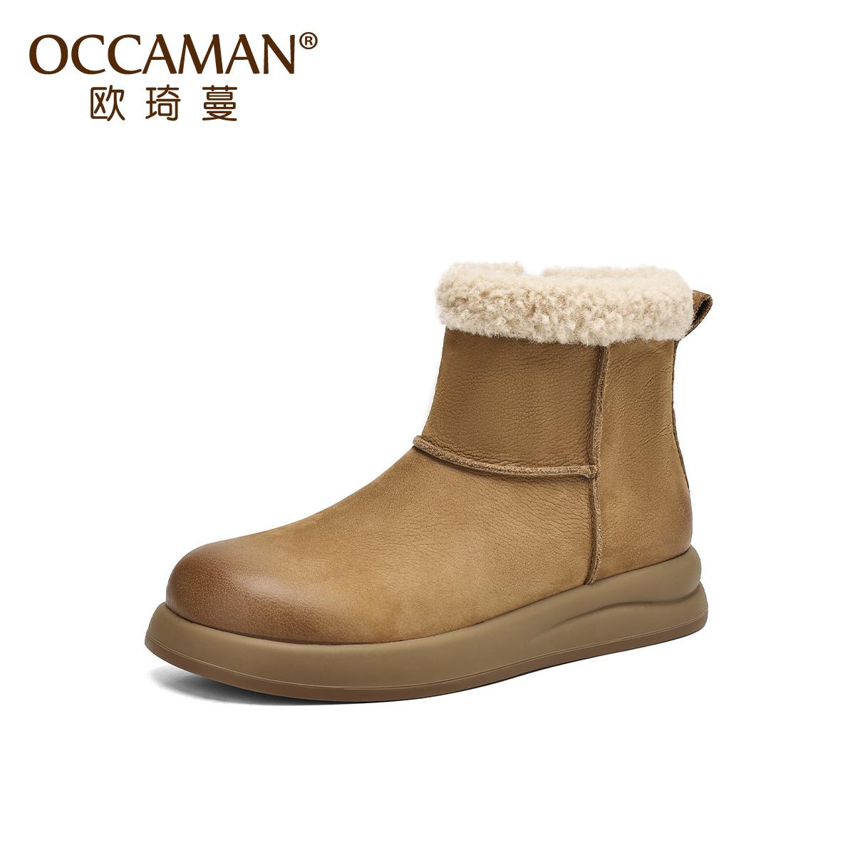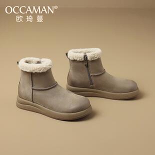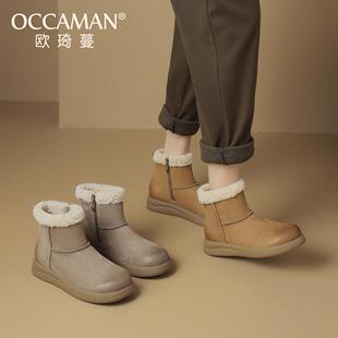 欧琦蔓加绒加厚头层牛皮雪地靴短筒秋冬新款 休闲户外女毛毛鞋