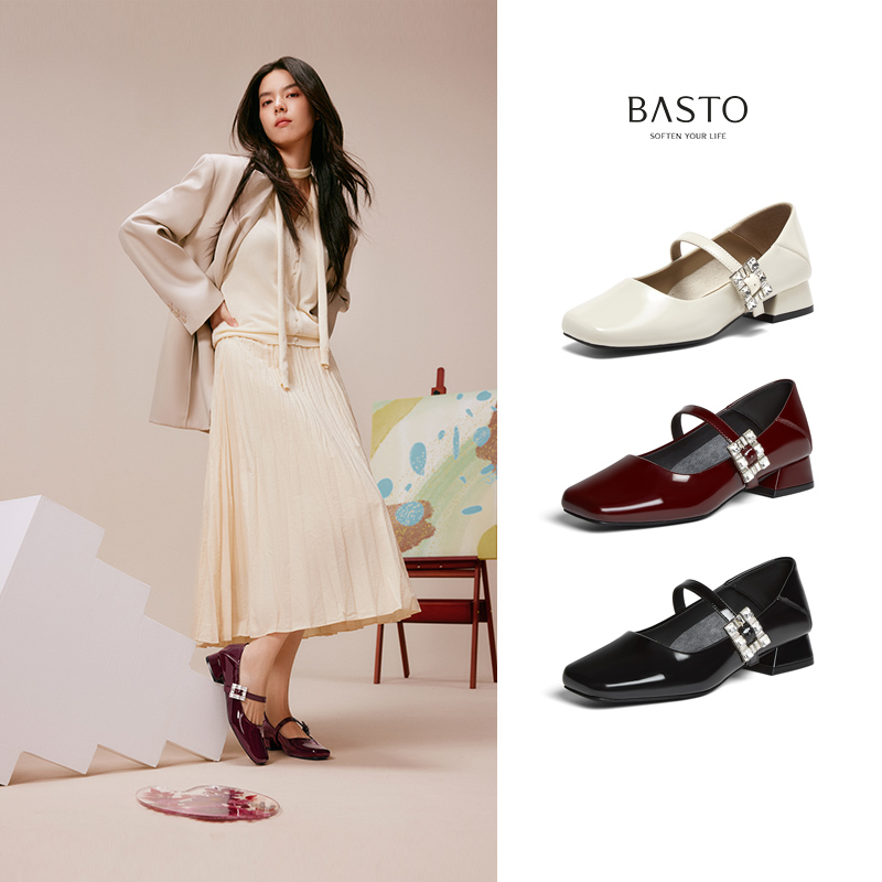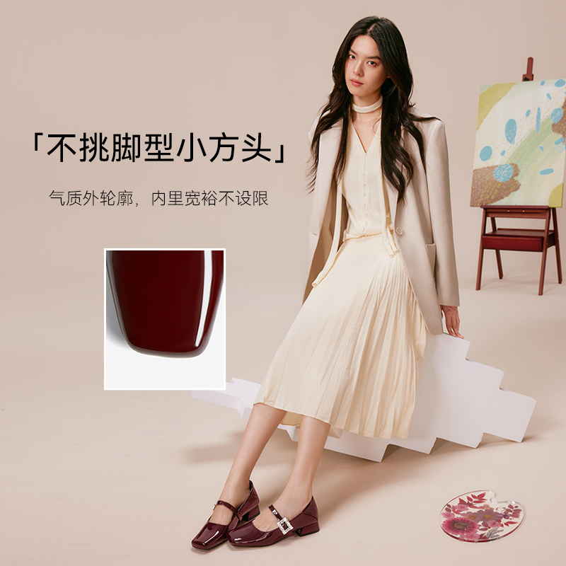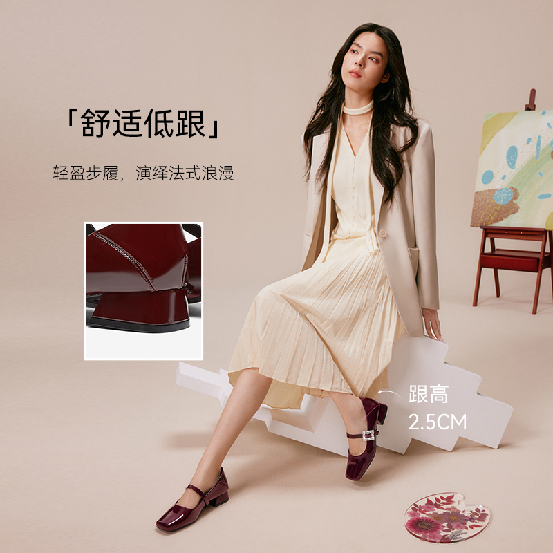 法式 婚鞋 红色玛丽珍鞋 浅口女单鞋 B2021CQ5 小皮鞋 百思图2025秋新款