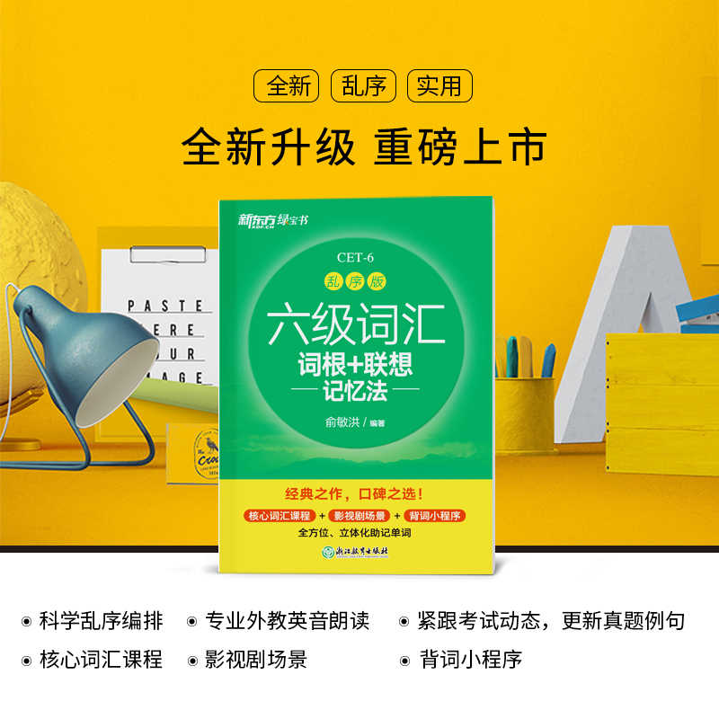 新东方英语六级词汇书 四六级单词书 六级词汇词根 乱序版 大学英语六级考试词汇真题试卷俞敏洪绿宝书 联想记忆法 备考2025年12月