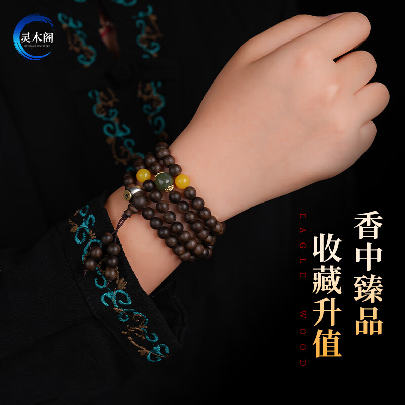庆祥泰天然绿檀木手串沉香老山檀木质女男士 文玩檀香佛珠盘玩盘串