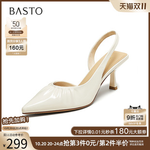潮流尖头细高跟女凉鞋 后空凉鞋 F5231BH5 商场同款 百思图2025夏新款