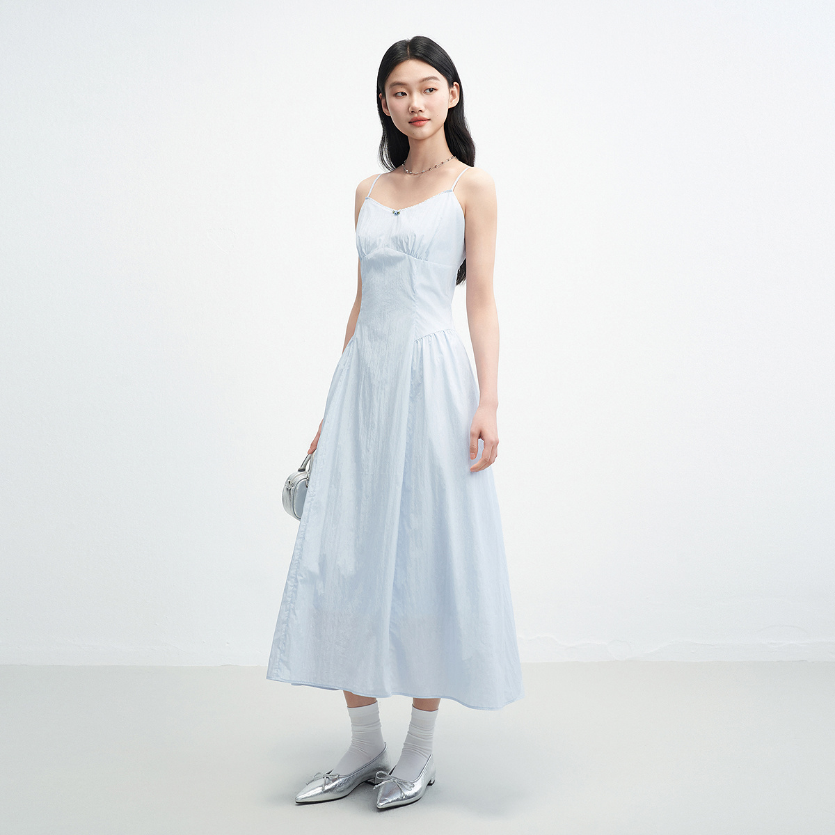 两件套裙子女装 侧边抽绳吊带裙罩衫 503624 三福连衣裙2025秋季