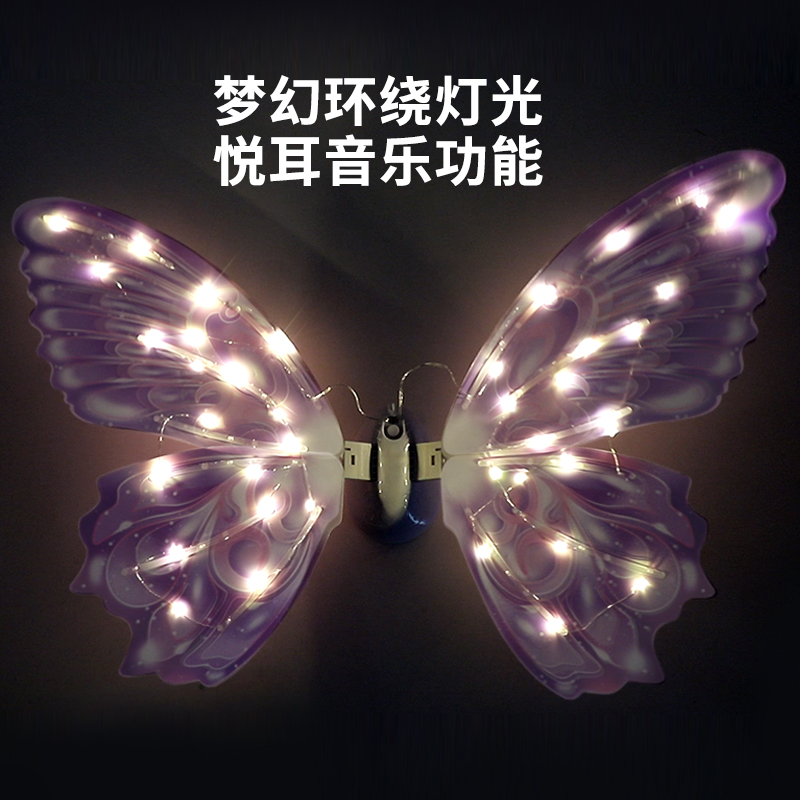 新款 蝴蝶翅膀小仙女孩子电动背饰儿童六一玩具公主礼物 会发夜光