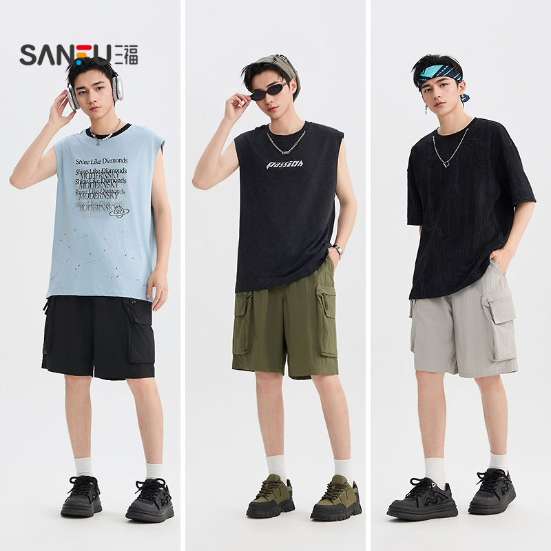 新款 2025夏季 运动冰丝裤 子男休闲美式 HG真维斯山系男士 五分裤 短裤