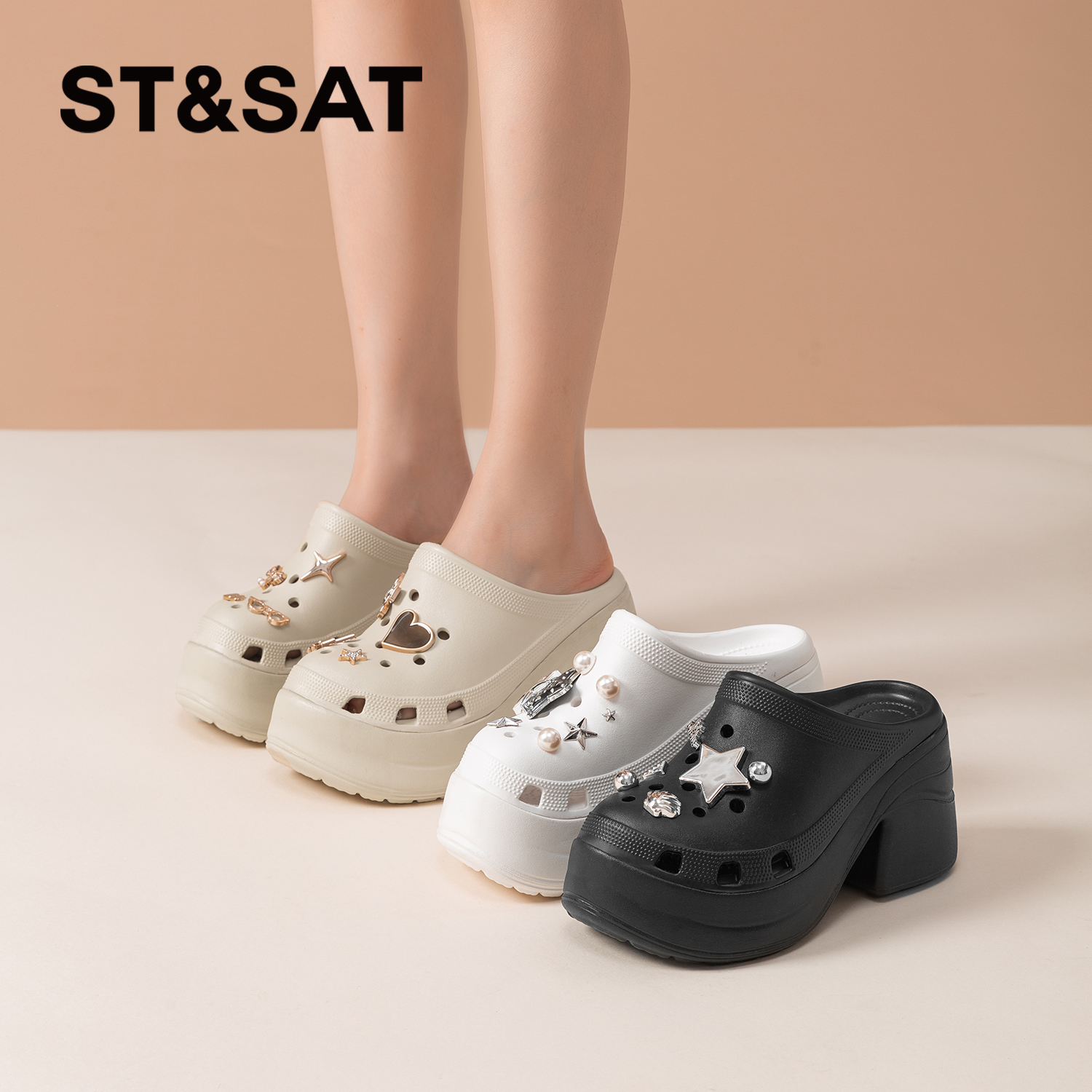 女夏季 女鞋 新款 外穿休闲沙滩鞋 厚底增高女士凉鞋 星期六人鱼洞洞鞋