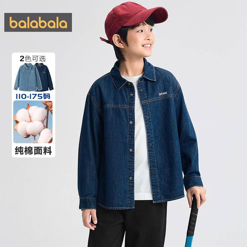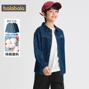 童装 巴拉巴拉男童牛仔衬衫 新款 外套大童衬衣2025秋季 儿童纯棉薄款