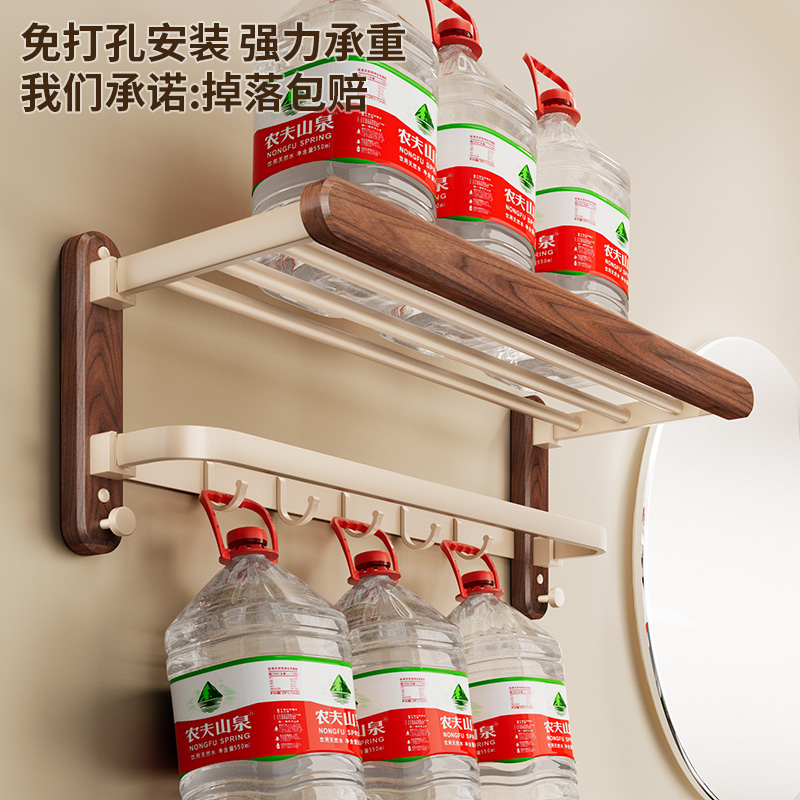 胡桃木毛巾架卫生间免打孔浴室置物架厕所挂架毛巾挂杆高端浴巾架