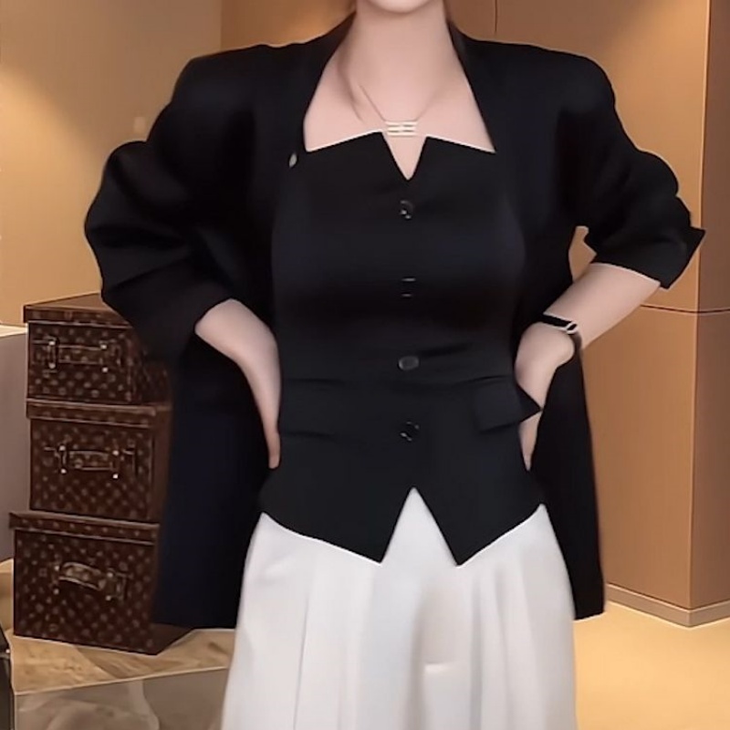 辣妹穿搭洋气小衫 美式 内搭小众设计感上衣 背心吊带女夏季 黑色修身