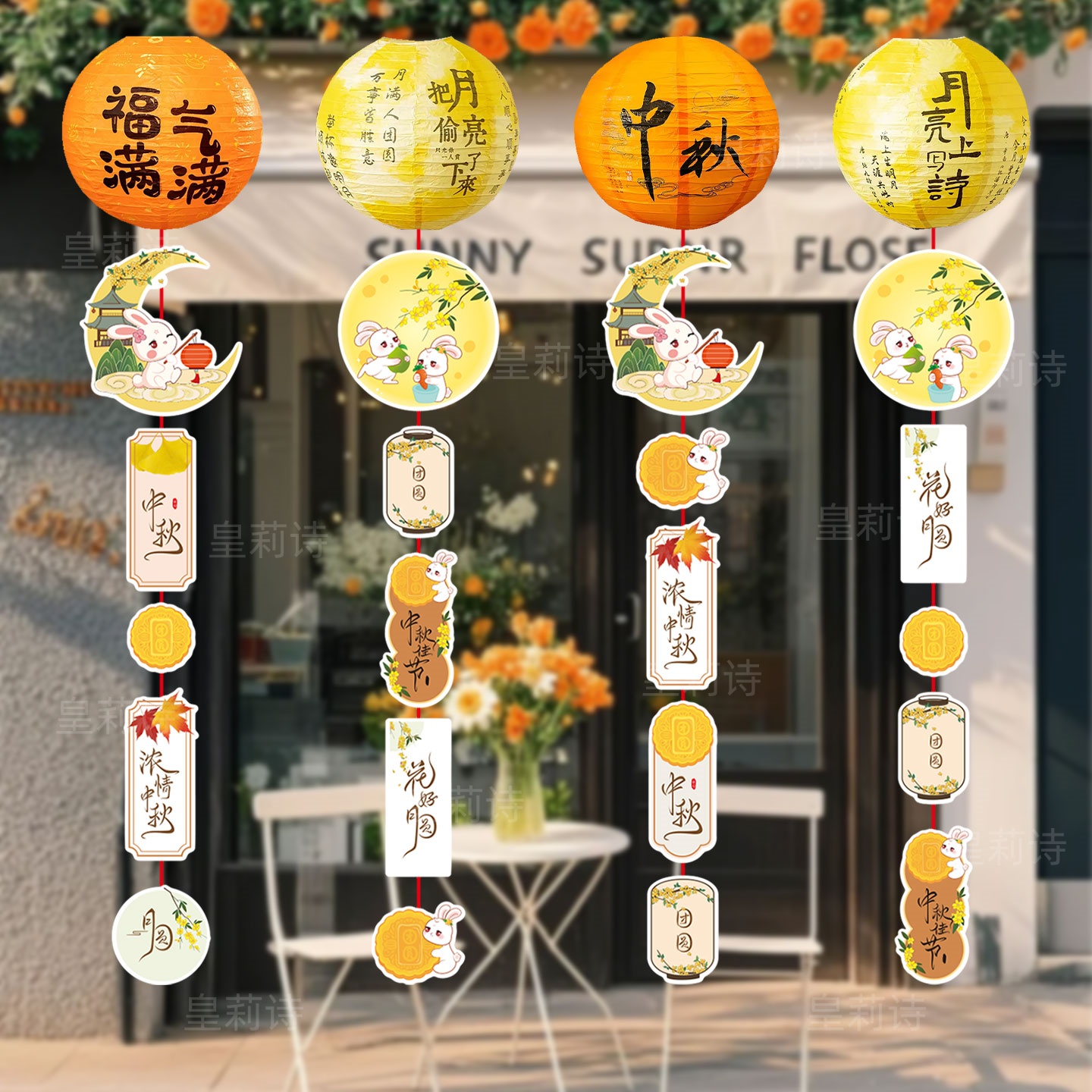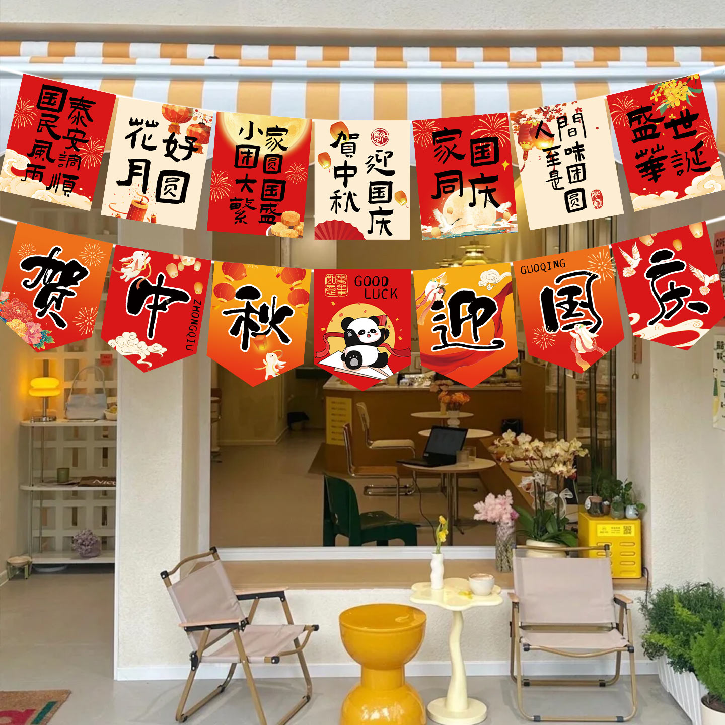 中秋节场景布置挂旗国庆活动氛围中秋装 饰横幅吊旗幼儿园道具拉旗