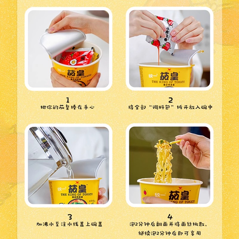 统一茄皇方便面杯装 速食方便面 番茄鸡蛋牛肉面速食新疆番茄整箱装