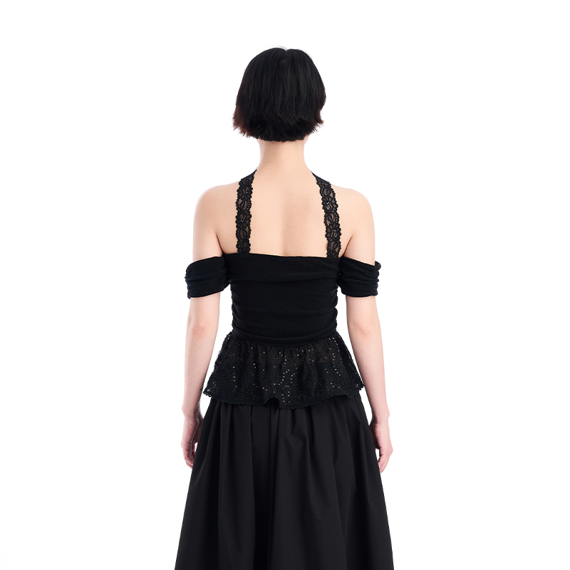 女抹胸上衣一字肩蕾丝蓬蓬裙 吊带小衫 Eimismosol2025夏季 新款