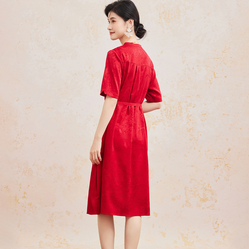 纯色桑蚕丝优雅女式 气质小立领春夏新款 盘扣 连衣裙 国风花式
