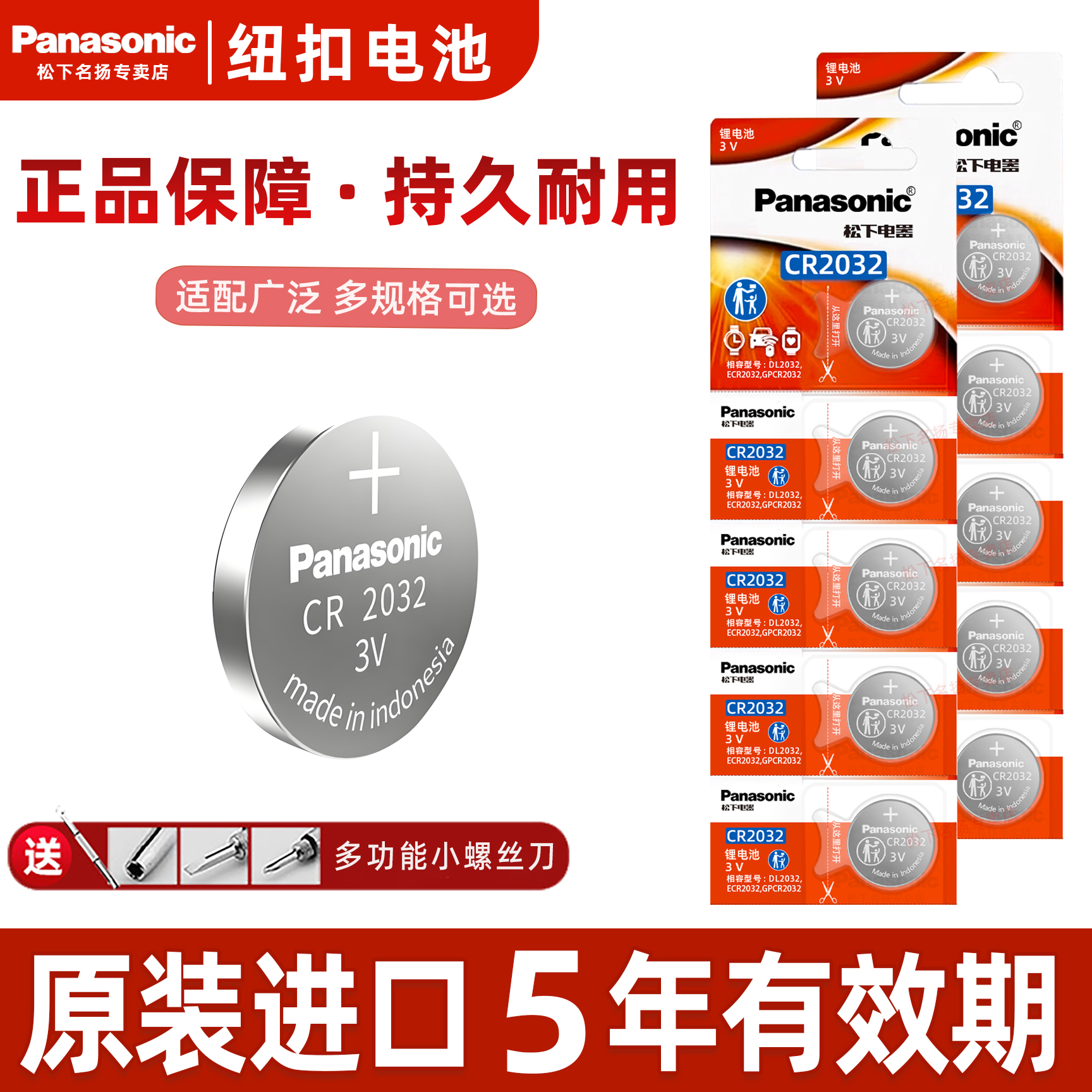 松下CR2032纽扣电池10粒装 机顶盒遥控器电子秤汽车钥匙适用于奥迪现代大众起亚长安丰田奔驰宝马别克本田