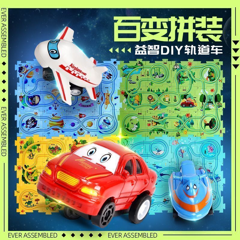 儿童益智轨道汽车diy拼装 电动小车恐龙自动轨道汽车宝宝益智玩具