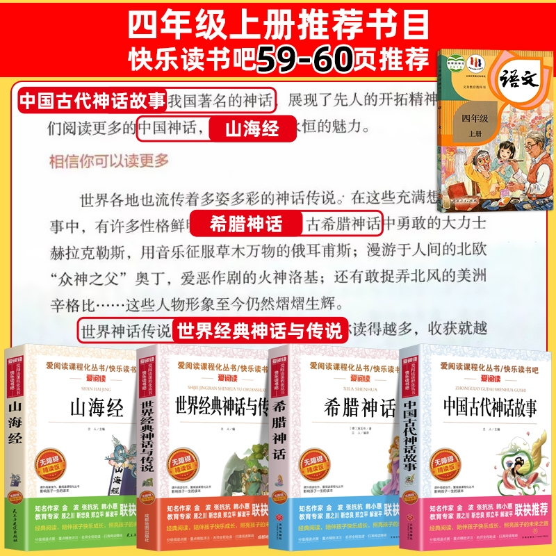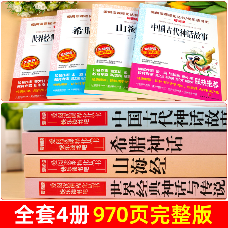 神话与传说 全套4册 山海经世界经典 希腊神话 小学生四上快乐读书吧 中国古代神话故事四年级上册必读课外书正版