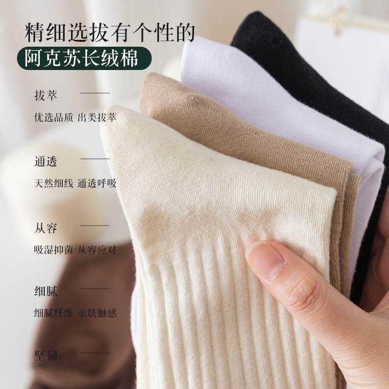 棉伙棉伴海藻袜舒适抗菌防臭男女商务运动纯色裸感中筒袜