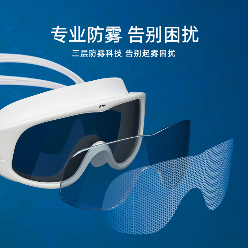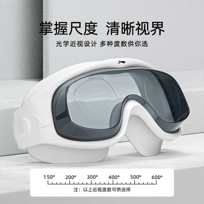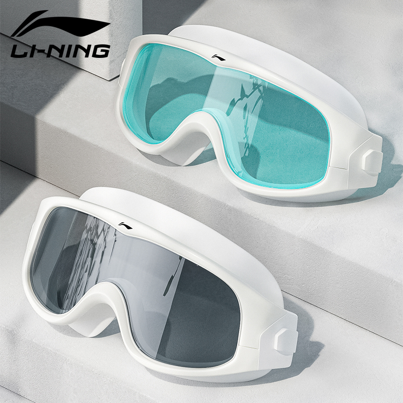 李宁泳镜女防水防雾高清大框近视游泳眼镜男士 专业泳帽泳镜套装