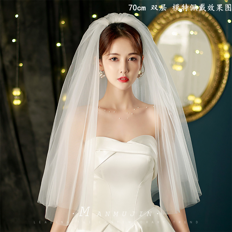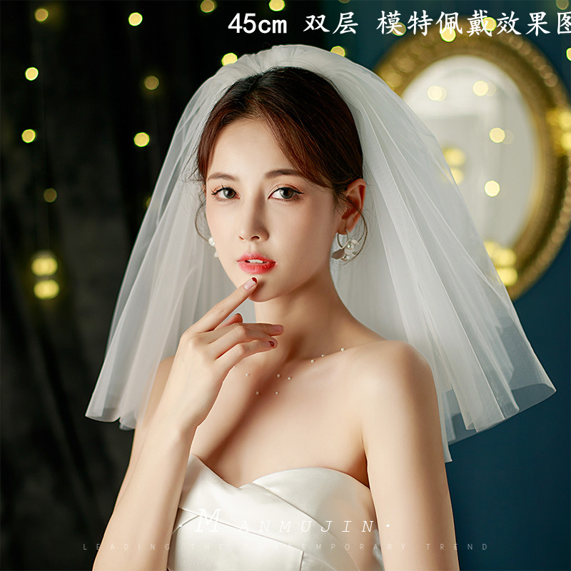 超仙简约软网素纱新娘结婚头纱领证登记写真旅拍照头饰双层短头纱