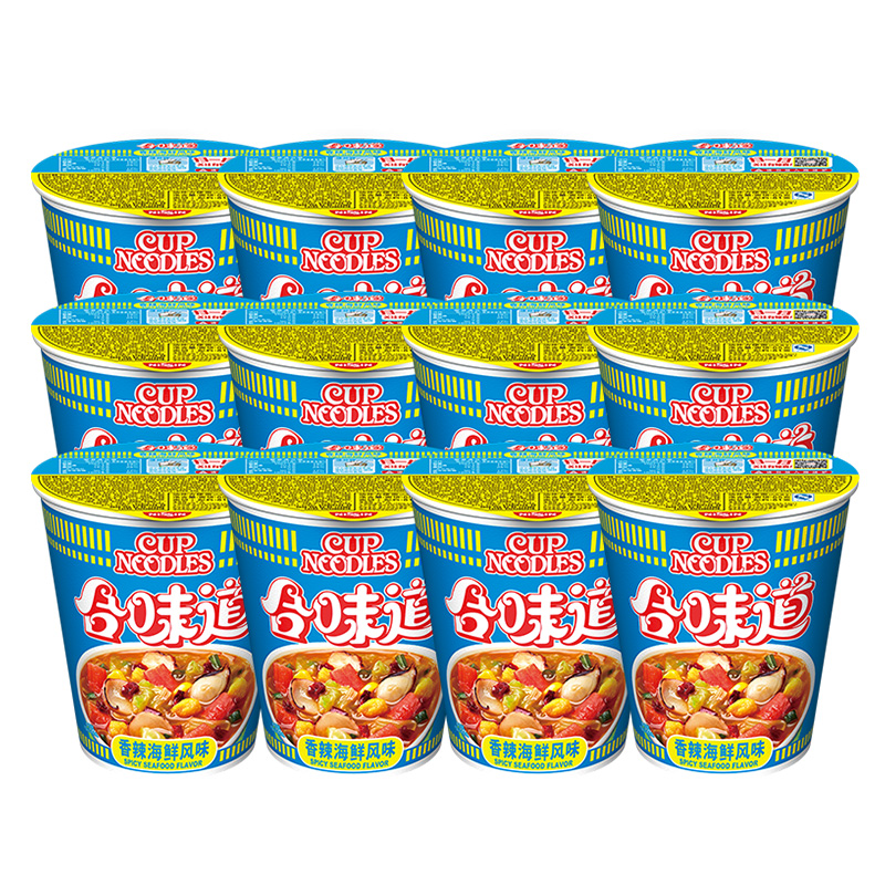 NISSIN 日清合味道香辣海鲜风味杯面整箱12杯方便面泡面早餐夜宵