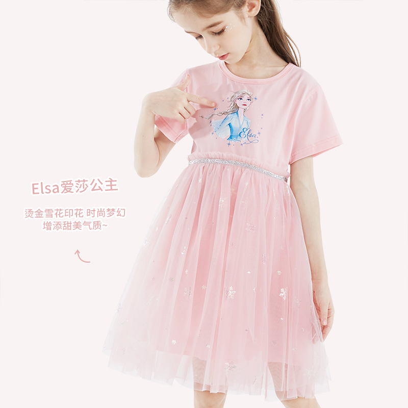 薄款 儿童裙子爱莎短袖 蓬蓬裙 新款 迪士尼艾莎公主裙女童连衣裙夏装