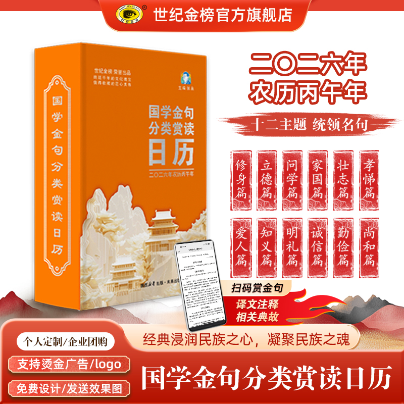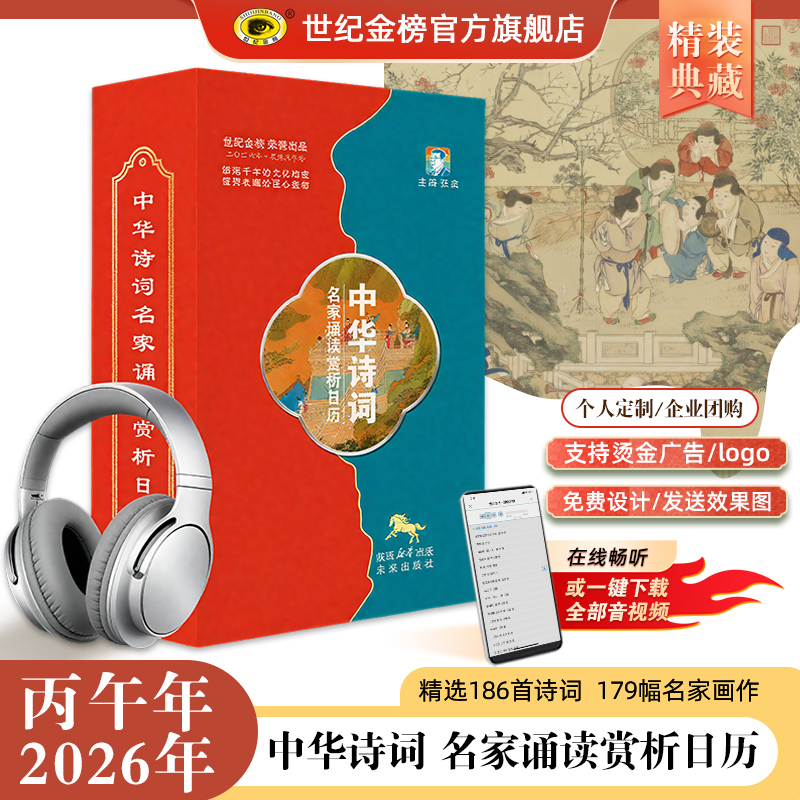 创意日历扫码 世纪金榜2026年新版 中华诗词名家诵读赏析日历国学金句分类赏读日历新款 可定制 听音频礼品奖品桌面摆件 日历台历